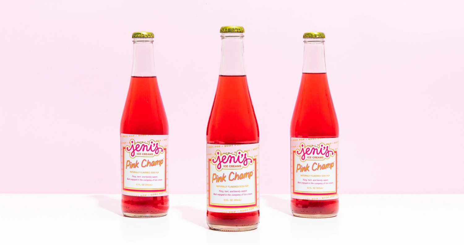 A longtime dream of Jeni’s, Pink Champ is our first-ever sparkling beverage made specially to pair with ice cream. It’s a flavor enhancer. Palate cleanser. And an all-around interesting drink. Akin to a seltzer, less sweet than a soda, and with a refreshing tart edge, Pink Champ helps all the nuances of our flavors truly shine. Available in scoop shops nationwide.