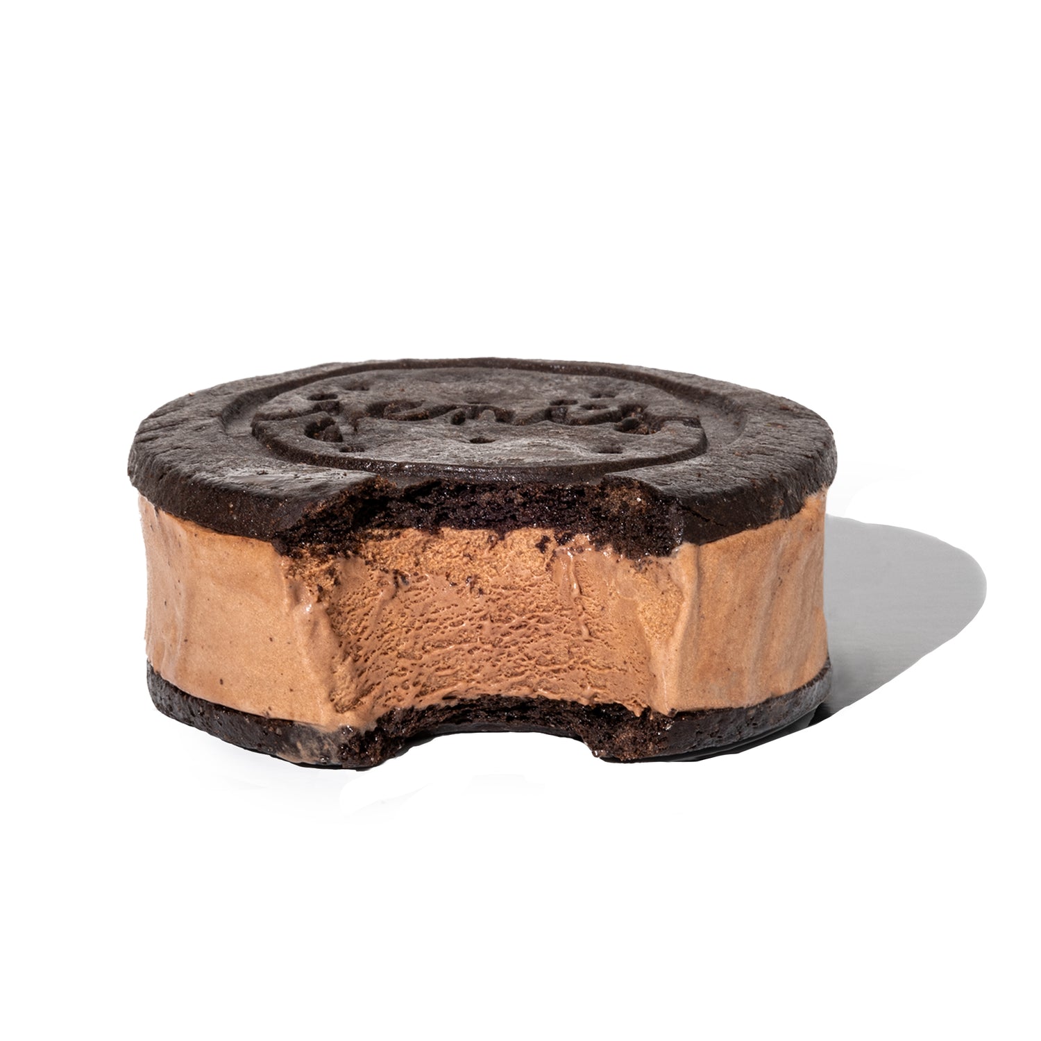 A rich, complex, and endlessly satisfying chocolate-on-chocolate sandwich. Darkest chocolate cream packed with Fair Trade cocoa and amplified with a dash of coffee extract. Paired with soft, fudgy cookies like a chocolate crust.