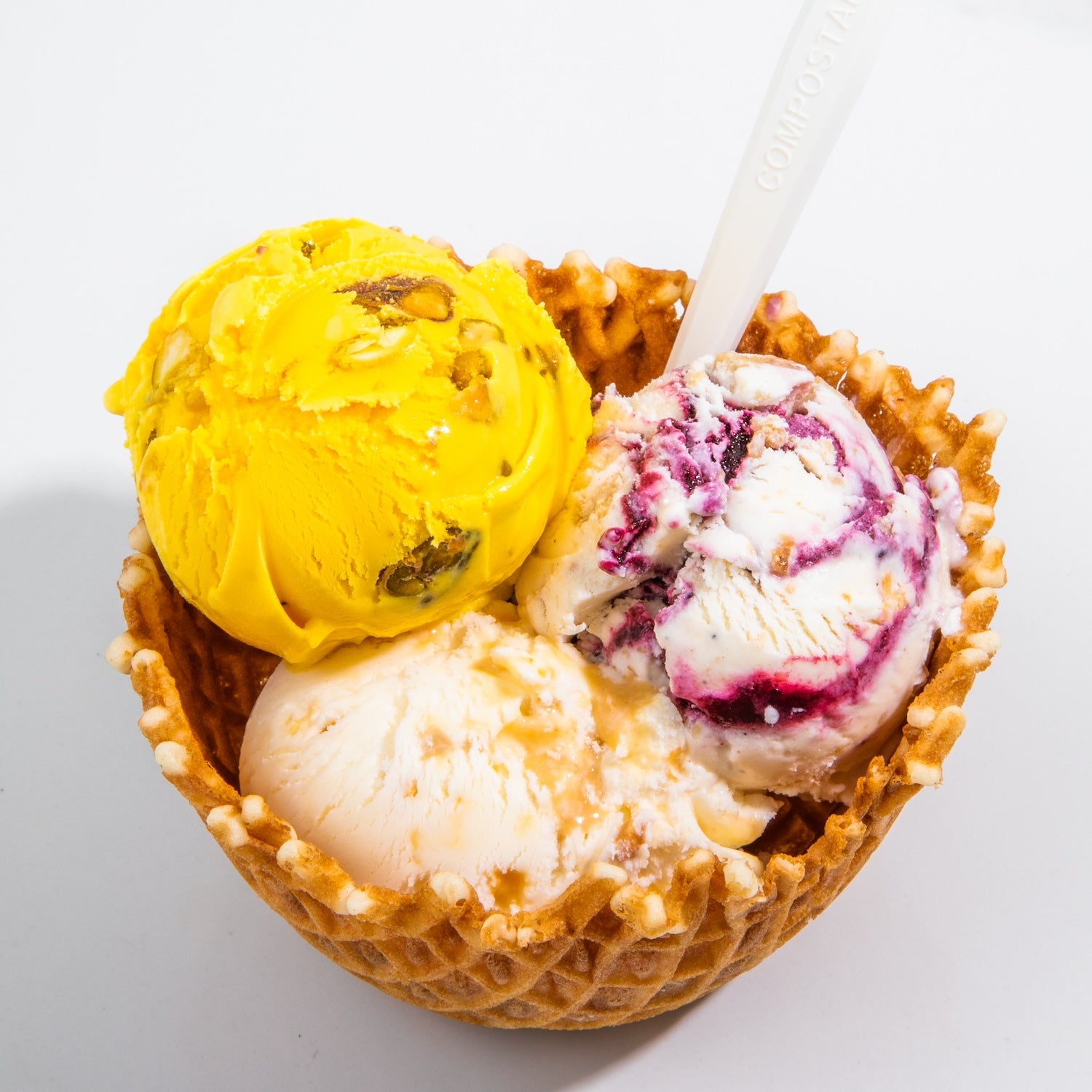 Bastani Sonnati is available in scoop shops nationwide for a limited time. We recommend The Hundreds Signature: Bastani Sonnati paired with Brown Butter Almond Brittle and Brambleberry Crisp, served in a Buttercrisp Waffle Bowl.