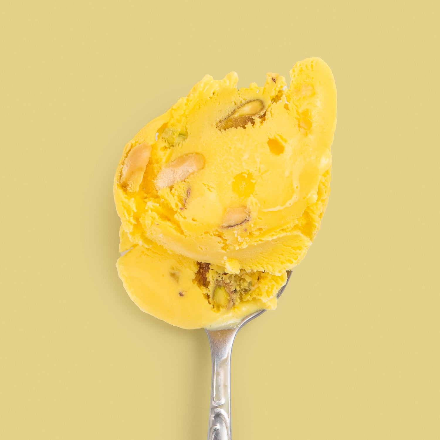 Our version upholds the traditional flavor profile: saffron, rose water, and pistachio. We started with the highest-quality saffron we could find, sourced from Curio Spice Co. An aromatic spice that gives the ice cream earthy flavor with floral and honeyed notes — plus its stunning golden hue. A touch of rose water pushes the saffron into full bloom. And a scattering of pistachios adds a satisfying nutty crunch.